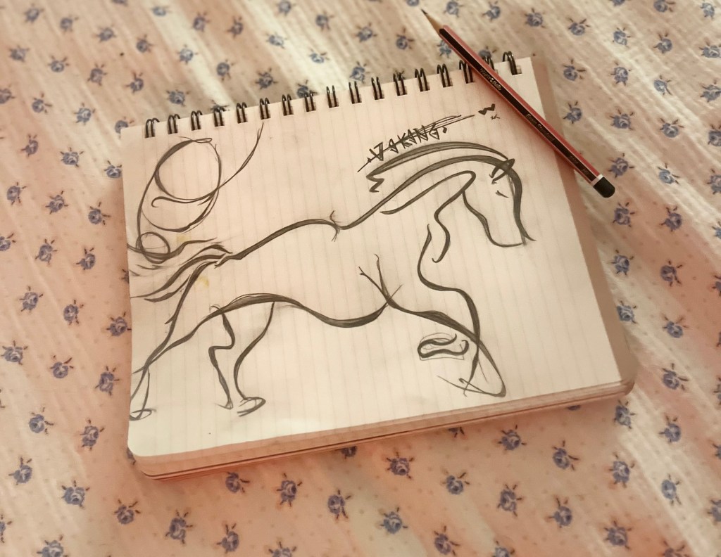 โคAt times, it feels as if creativity must be driven back to life. Itโs not easy to try something new, especially when youโve convinced yourself โyouโre not a sketcherโ or โyouโre not a painterโ. Doing it anyway, can be both humbling and surprisingly fun and interesting. This sketch conveys my feelings of strength and resilience. Like a fierce Viking spirit driving me forward. My strength in silent, bold action. โBoldness, Spirit, Victoryโ.